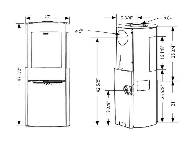 | Puissance thermique maximale - bois | 53,832 BTU/h (18.8 kW) |